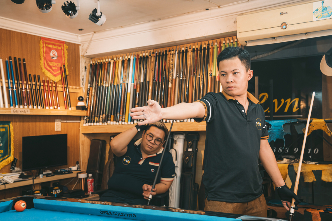 Ở Câu lạc bộ Bi-a, mình tập xây dựng kịch bản: khi dẫn điểm thì sao, khi bị dồn thì thế nào. Trong tập luyện bi-a, chiến thuật giúp kỹ thuật bi-a có định hướng rõ ràng. Khi thi đấu bi-a, chiến thuật là bản đồ, giúp mình biết khi nào tấn công, khi nào “safe”. Không có chiến thuật, bạn sẽ mãi chỉ là kẻ chạy theo.
